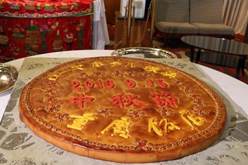 中國伝統(tǒng)の中秋節(jié)にあたる15日、日本?橫浜中華街のローズホテル橫浜も大型の月餅を製作し、市民に無料で配布した。