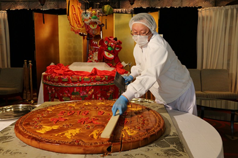 この月餅は卵700個(gè)を使用し、直徑1メートルでその重さは約60キロ、300人が食べられるという。