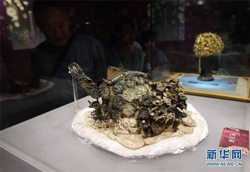 「花と樹(shù)の揺らめき、光輝く髪飾り——蕭皇后禮冠実験室の考古學(xué)及び保護(hù)に関する成果展」が18日、江蘇省の揚(yáng)州博物館で開(kāi)かれた。修復(fù)作業(yè)を終えた蕭皇后禮冠や冠飾り、専門(mén)家が復(fù)元した蕭皇后禮冠のレプリカなどが一般に初公開(kāi)された。寫(xiě)真は同展で公開(kāi)された隋朝の第2代皇帝煬帝の妻である蕭皇后の禮冠のレプリカ(9月18日撮影)。新華網(wǎng)が伝えた。(編集TK)