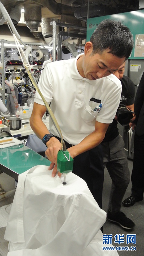 本館の地下にあるランドリー室では、毎日2000點以上の衣類が洗濯されている。スタッフはまず汚れなどを徹底的にチェックし、薬品を使ってそれを軽く落とす。さらにスチームを使って処理し、きれいに汚れを落とす。洗濯中にボタンが取れるということもよくある。そのため、帝國ホテルのランドリー室には、200種類以上のボタンのほか、いろんな色や材質(zhì)の糸が用意されている。スタッフは外れる可能性があるボタンを、あらかじめ取りはずしておき、アイロンがけが終わった後に縫い付け直す。もしも外れてしまった場合は、予備のボタンを付ける。最初から取れていたボタンは、保管されているボタンの中から、最もよく似たものを選んで付ける。このような超一流の洗濯に、宿泊客は感服しているのだ。