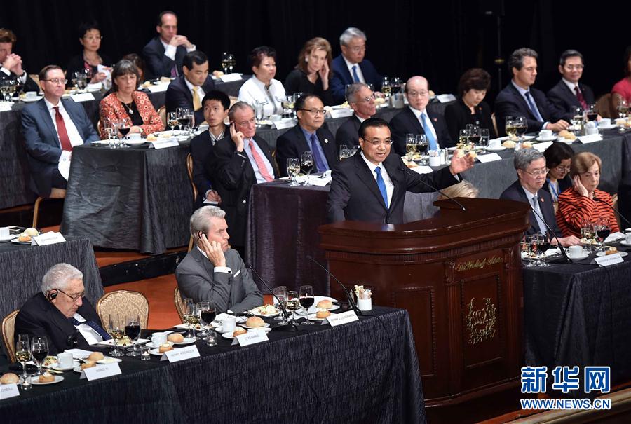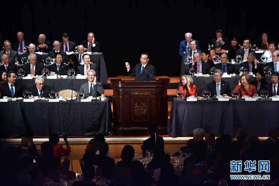 李克強総理は現(xiàn)地時間20日夜、ニューヨーク経済クラブ、米中関係全國委員會、米中貿易全國委員會の主催した歓迎會に出席し、挨拶を述べた。人民日報が伝えた。