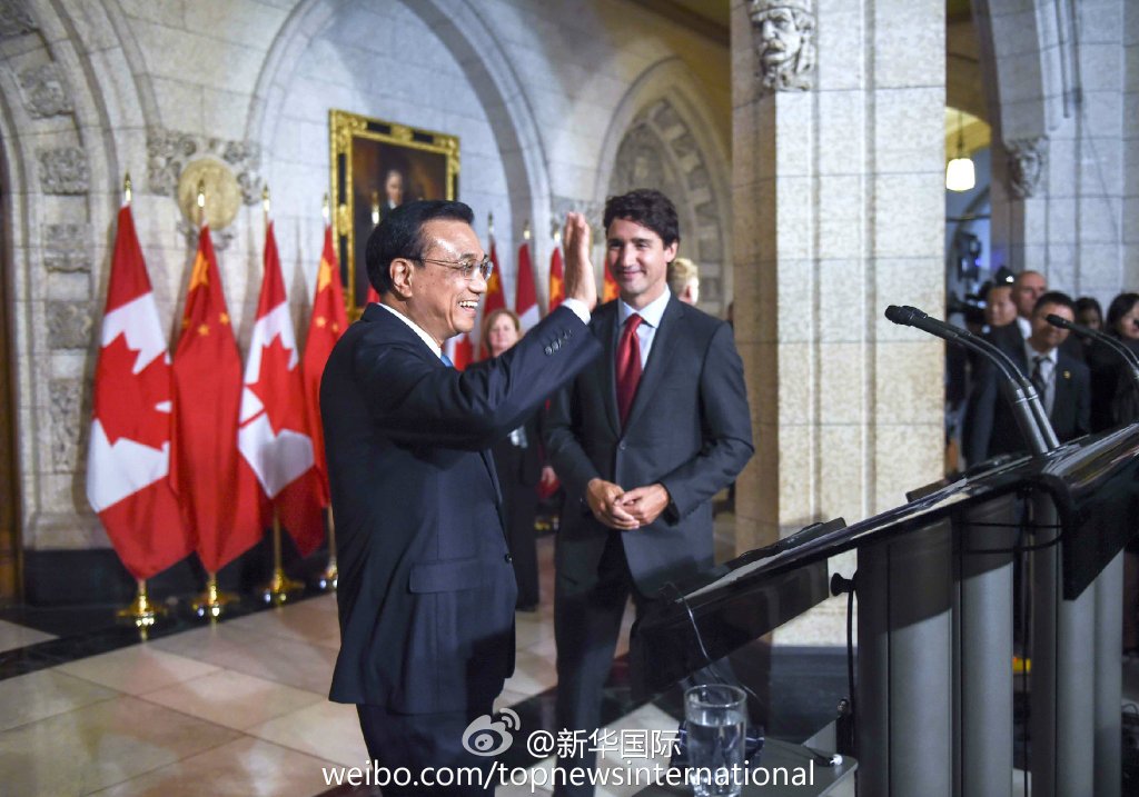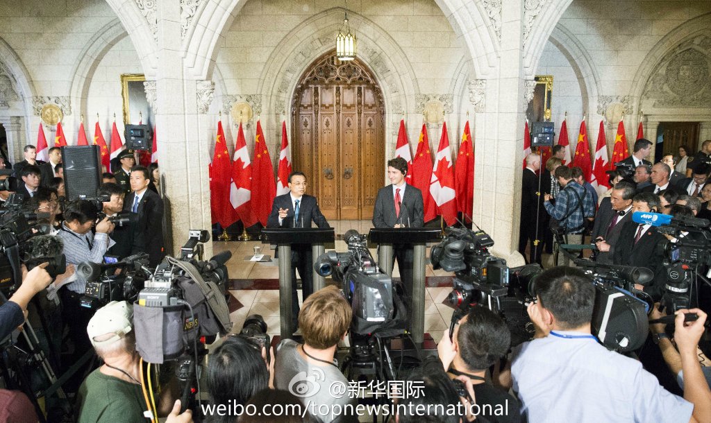 その後、両首相は共同記者會(huì)見に臨んだ。李総理は「中國とカナダは広範(fàn)な利益を共有し、良好な協(xié)力関係を保ってもいる。共通利益は溝を大きく上回る。両國の協(xié)力が拡大し、親善が深化し、政治的相互信頼が必ずや強(qiáng)化されることを確信している」と述べた。(編集NA)