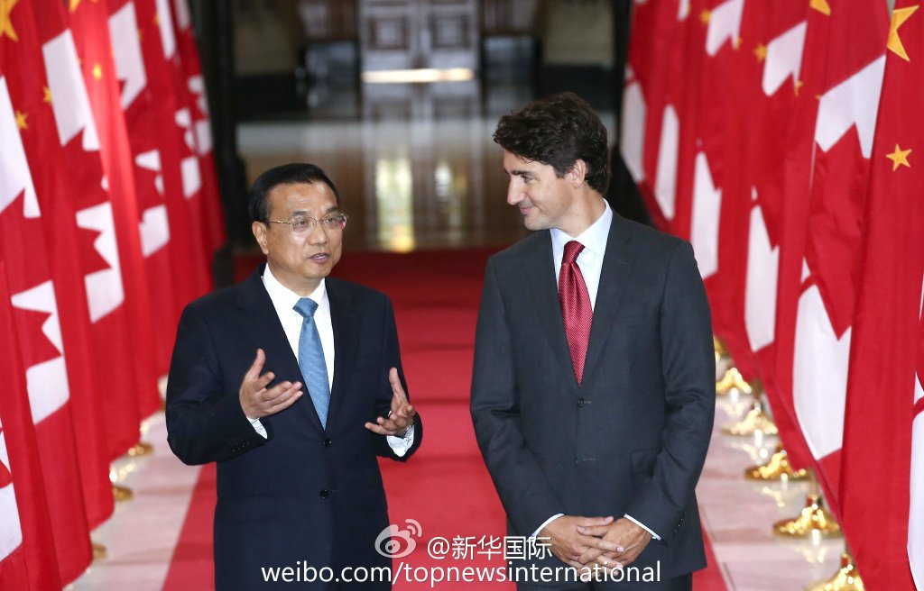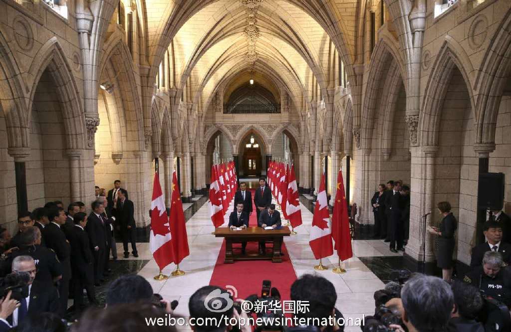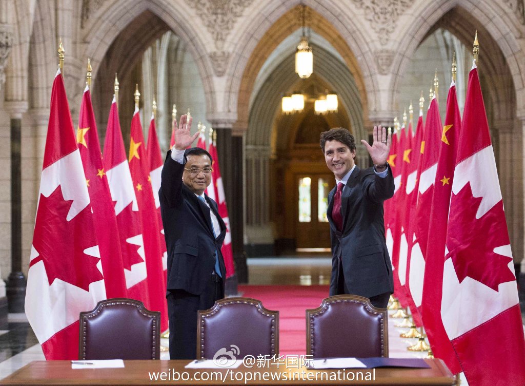 李克強(qiáng)総理とカナダのトルドー首相は22日午前、カナダ國(guó)會(huì)議事堂で両國(guó)の協(xié)力文書の調(diào)印式に出席した。両首相が立ち?xí)χ?、両國(guó)代表は「第三國(guó)市場(chǎng)協(xié)力の展開に関する共同聲明」など貿(mào)易、投資、金融、観光、教育、司法協(xié)力など各分野に及ぶ14件の協(xié)力文書に調(diào)印した。新華網(wǎng)が伝えた。(編集NA)