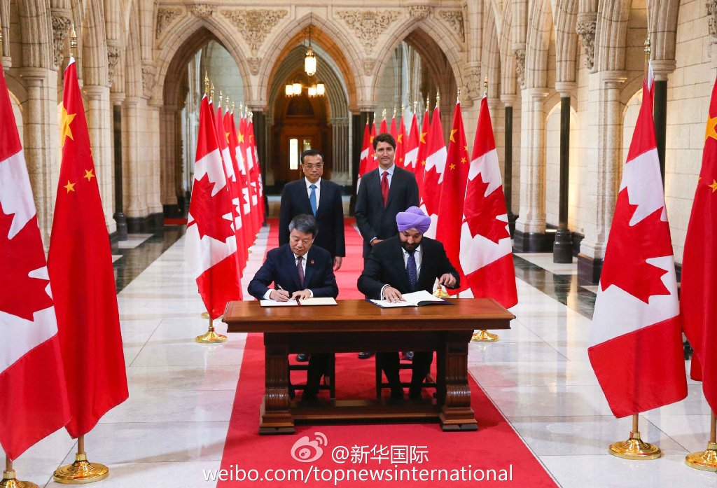 李克強(qiáng)総理とトルドー首相が協(xié)力文書調(diào)印式に出席