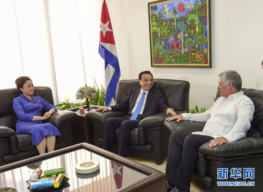 李克強総理は現(xiàn)地時間24日午後、ハバナに到著した後、空港に迎えに來たキューバのディアスカネル國家評議會第一副議長兼閣僚評議會第一副議長と會談した。人民日報が伝えた。