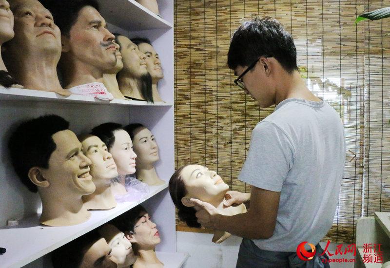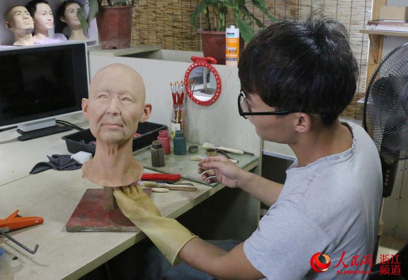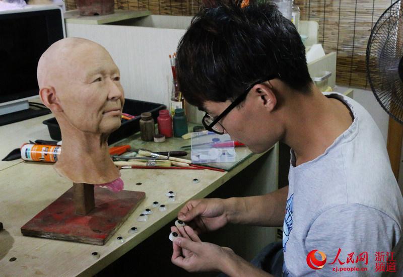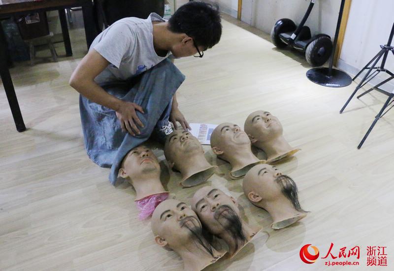 兪海波さん(31)は蝋人形制作にたずさわってすでに10年近くになる。彼によると蝋人形の制作には資料の収集から粘土型の作成、蝋型の作成と細かな補修を経て、髪や眉毛、髭などを植毛し、最後にメイクを施して、衣裝を著せるのだという。人民網(wǎng)が伝えた。