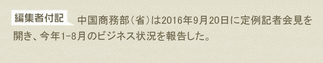 同期、中國(guó)國(guó)內(nèi)の投資家が世界の約160の國(guó)や地域の企業(yè)約6000社に非金融系直接投資を?qū)g施し、対外直接投資額が前年同期比53.3%増の累計(jì)7751億2000萬(wàn)元(約11兆6268億円)に達(dá)したという。8月だけを見ると、対外直接投資額は前年同期比13.4%増の1005億2000萬(wàn)元(約1兆5078億円)だった 。