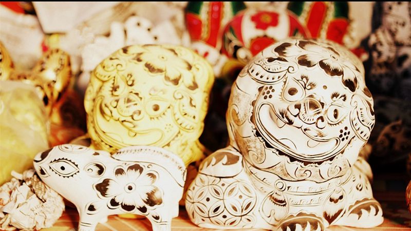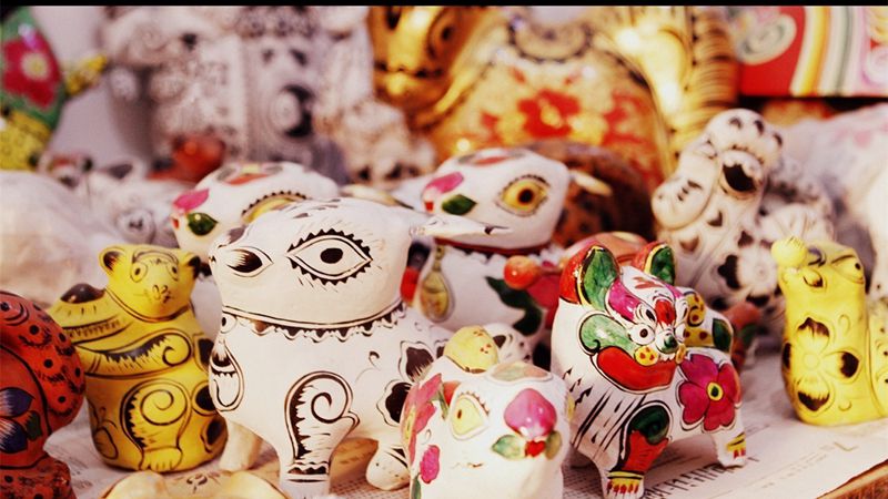 鳳翔泥塑は中國國家級無形文化遺産の保護(hù)プロジェクトであり、陝西省寶鶏市鳳翔県の民間蕓術(shù)でもある。誇張された造形、豪快で派手な色を持つ鳳翔泥塑は、古代の石刻、年畫、切り紙の飾り方が取り入れられている。正月や祝日、縁日になると、泥塑は現(xiàn)地の人々の持って來いお土産になる。2002年、2003年、2007年の十二支切手には、鳳翔泥塑の馬、羊とイノシシのキャラクターが使われていた。