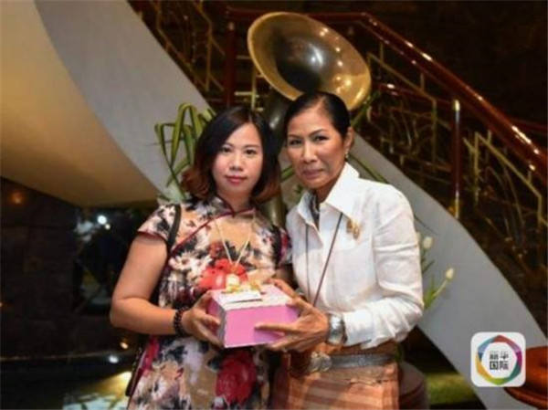 楊莉さん(左)とタイの観光?スポーツ省のゴープガーン大臣