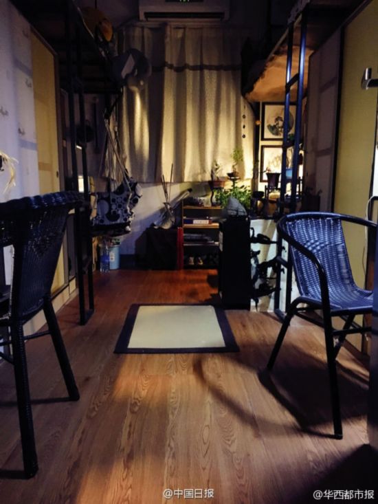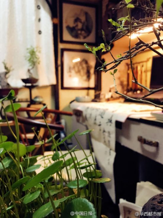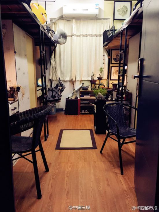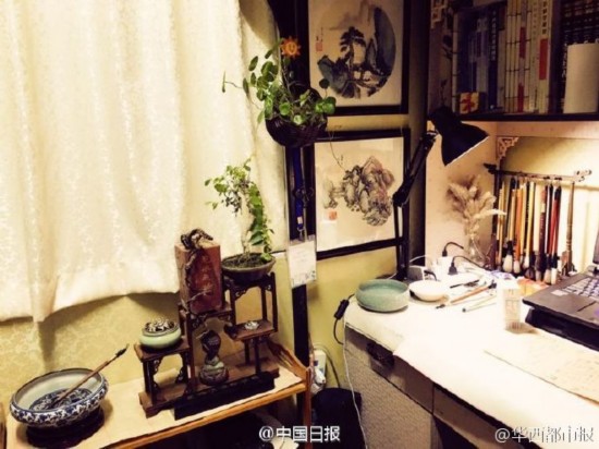 青々とした観葉植物がここかしこに置かれ、機(jī)の上には文房四寶(文房具)や水墨畫が積み重なり、椅子の橫の鉢植えには趣のある枯れ枝がいけてあり、壁にはルームメートたち自作の油絵が飾られている。古代中國にタイムスリップしたような感覚に襲われそうなこの部屋、実は中南大學(xué)男子寮7012室に暮らす4人の男子生徒が一人200元(約3000円)ずつ出し合い、大改造した學(xué)生寮の一室なのだ。こんな溫かみにあふれた部屋の中で上半身裸の男子學(xué)生たちが人生の哲學(xué)に関する詩を吟ずる姿など、誰が想像できるだろうか。華西都市報が伝えた。(編集TK)