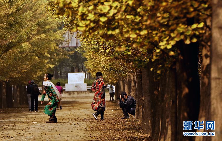 秋色が深まる季節(jié)となり、北京市昌平區(qū)張各莊村にある銀杏緑化栽培園のイチョウ並木は一面黃金色に彩られた。その光景はまるで1枚の絵のように美しく、多くの市民が秋の美しい風(fēng)景を楽しんだ。寫真はイチョウ並木の中で秋の景色を撮影する市民(10月13日撮影)。新華網(wǎng)が伝えた。(編集YK)