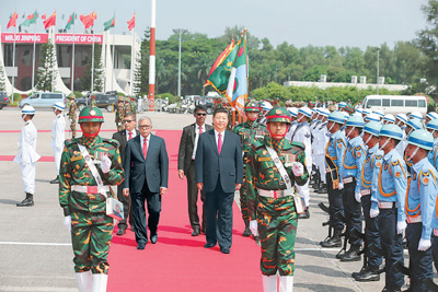 バングラデシュのハミド大統(tǒng)領(lǐng)は空港で習(xí)近平主席を迎える歓迎式典を行った。