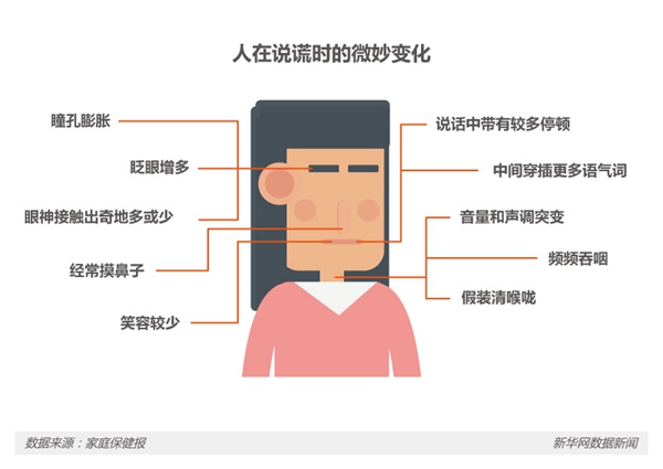心理學者は、「人々は無意識に他人に噓をつく。時には十分に考えないで、自分が噓をついているという自覚もないことさえある。人は噓をつくとき、自分自身の本當の気持ちを覆い隠したいと思っている。いろいろ身體的動作に変化があればあるほど、噓がバレてしまうことが多い」と分析している。