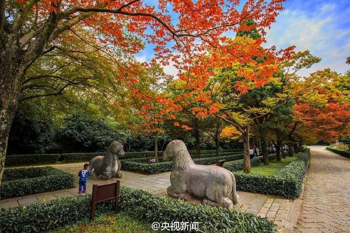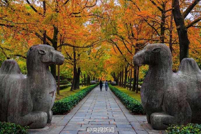江蘇省南京市にある600年以上の歴史を持つ明孝陵石像の小道は、赤、黃色、緑色の葉によって美しく彩られている。ここは南京の中山陵風(fēng)景地區(qū)にあり、市民には「南京で最も美しい600メートルの小道」と呼ばれている。中國中央テレビが伝えた。(寫真は中國中央テレビの微博公式アカウントより転載)。(編集YK)