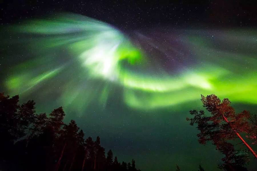 秋の始めはオーロラをよく目にすることができる季節(jié)だ。フィンランドのロバニエミで発生するオーロラは彩り豊かにきらきら輝き、世界各地から來(lái)た観光客を魅了している。オーロラは磁場(chǎng)の強(qiáng)い高緯度地域の上空に発生し、彩り豊かな光が発生する現(xiàn)象だ。太陽(yáng)から吹き出す電気を帯びた粒子(太陽(yáng)風(fēng))が地球の磁場(chǎng)に入ることで発生し、地球の南北の両極付近の上空で夜に美しい輝きを見(jiàn)せる。主に北極と南極で目にすることができる。中國(guó)中央テレビが伝えた。 (編集YK)