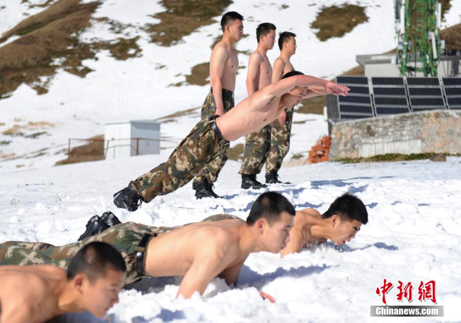 吉林省國境警備総隊長白山支隊の維東辺境検問所の將兵たちは標(biāo)高2100メートルの長白山主峰の雪の中で、上半身裸となり、戦意を養(yǎng)い、実踐能力を強化する野外訓(xùn)練活動を?qū)g施していた。中國新聞網(wǎng)が伝えた。(編集TG)