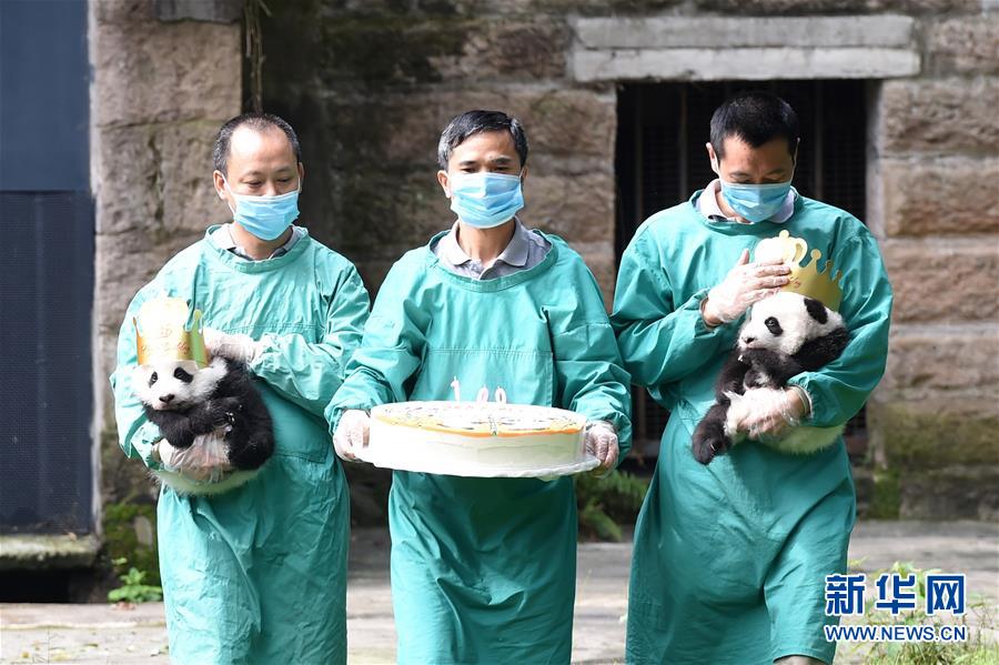重慶動物園の飼育員たちによって10月20日、雙子パンダの「大雙(ダーシュアン)」と「小雙(シャオシュアン)」の生後100日記念イベントが行われた。この雙子パンダは今年7月11日に生まれた?,F(xiàn)在まで健康狀態(tài)も良く、無事に生後100日を迎えたため、同日から正式に一般公開されることになった。寫真は生後100日記念イベントに參加する雙子パンダ(10月20日撮影)。新華網が伝えた。(編集YK)