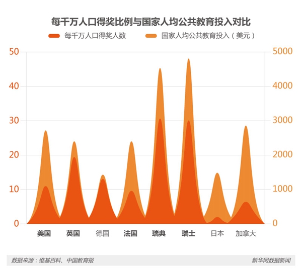 今年度のノーベル賞受賞者が最初に発表された今月3日、日本の生物學(xué)者?大隅良典氏がノーベル生理學(xué)?醫(yī)學(xué)賞を受賞した。今世紀に入り、計17人の日本人科學(xué)者がノーベル賞を受賞している。これは、ほぼ毎年1人が受賞した計算になる。この中には、毎年受賞候補に挙がるが受賞には至っていない村上春樹氏は含まれていない。周知のとおり、日本は教育を極めて重視しており、ノーベル賞受賞者を輩出することができていることも、素晴らしい人材育成と密接に関係している。実際、ノーベル賞受賞者數(shù)上位の國家では、教育費への投入額が軒並みGDPの4%を上回っている。
