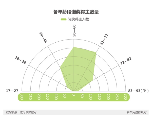 発表が終わった2016年ノーベル賞各賞の受賞者のうち、物理學(xué)賞、生理學(xué)?醫(yī)學(xué)賞、化學(xué)賞を含め、各賞受賞者の最年少は65歳で、ほとんどが72歳以上だった。だが、前世紀(jì)の50年前に遡ると、ノーベル賞受賞者の平均年齢はわずか56歳だった。(編集KM)