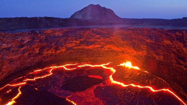 エチオピア北東部にあるエルタ?アレは活火山で、世界で最も暑い場(chǎng)所の一つ。標(biāo)高613メートルで、山頂に2つの火口があり、そのうちの1つの火口內(nèi)には世界的にも數(shù)少ない恒常的な溶巖湖があり、世界各地から観光客が訪れる。