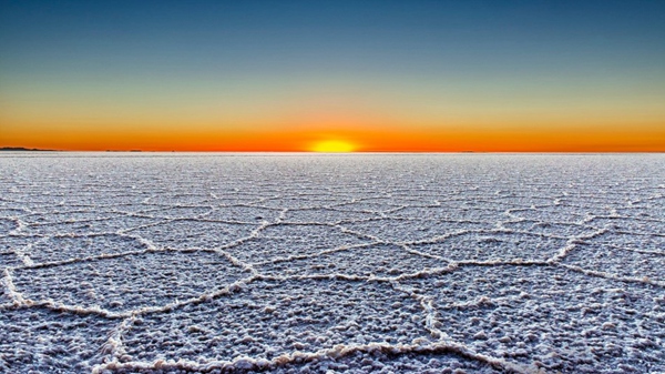 ボリビア南西部にあるウユニ塩原は世界最大の塩原で、その面積は1萬(wàn)582平方キロメートル。アンデス山脈が隆起した際に大量の海水がそのまま山の上に殘され、それが干上がって広大な塩原が形成された。標(biāo)高約3700メートルの山地にあり、見(jiàn)渡す限りの真っ白な平地を一目見(jiàn)ようと、世界各地から観光客が訪(fǎng)れる。