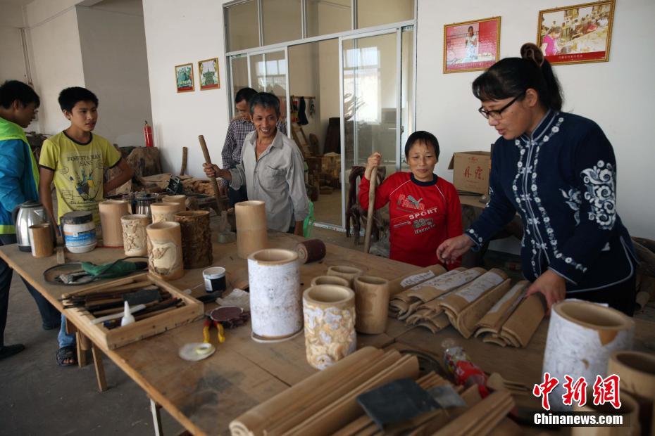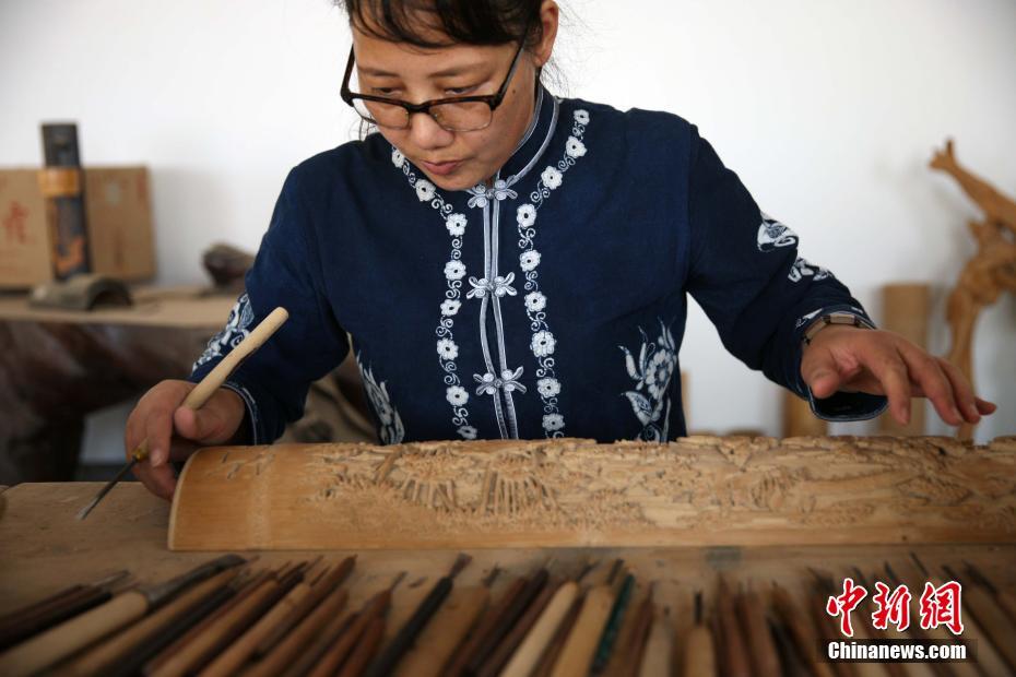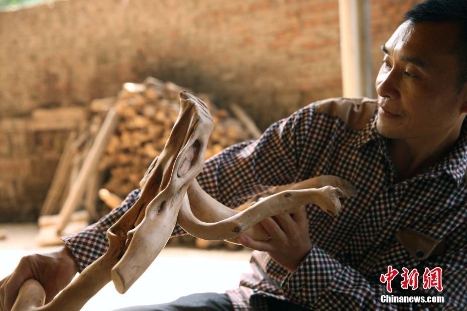貴州省赤水市は中國(guó)において「十大竹の里」のトップに君臨する地。同市の竹林面積は873平方キロメートルに及び、そのうち孟宗竹が340平方キロメートル、その他の竹が533平方キロメートルとなり、年間600萬(wàn)本の孟宗竹による商品が生産されている。赤水市の人々にとってこの貴重な竹資源をどのようにして開(kāi)発していくかが、その経済発展と観光商品の開(kāi)発において大きな意味を持つ。寫(xiě)真は身體障害者の晏伯倫さん(44)、乾燥させた樹(shù)木に彫刻を施す作品を長(zhǎng)年にわたり制作し、赤水市では知る人のいないほどの民間蕓術(shù)家だ。中國(guó)新聞網(wǎng)が伝えた。(編集TG)