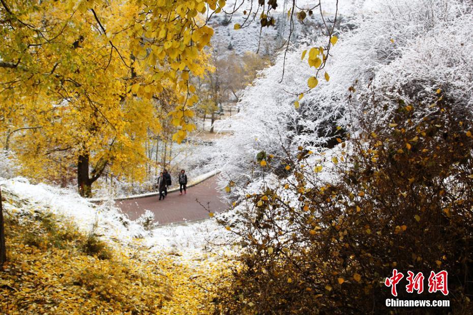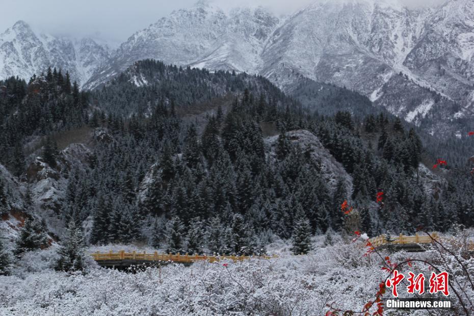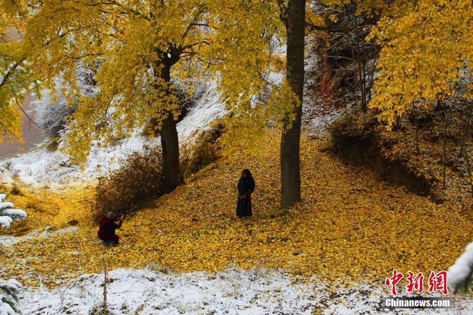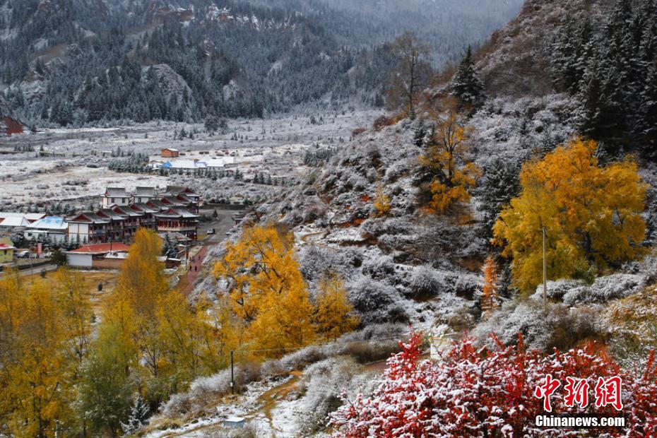 甘粛省粛南ユグル族自治県の祁連山のふもとで10月23日夜、雪が降った。同県の馬蹄寺景勝地區(qū)では、雪の白と木の葉の黃色が混在し、美しいコントラストを織り成して、多くの観光客を魅了した。寫真は粛南ユグル族自治県の公式サイトより転載。 中國新聞網(wǎng)が伝えた。(編集YK)