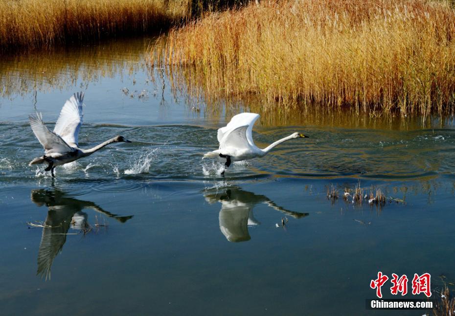 近年、甘粛省粛北県の自然保護(hù)地區(qū)の生態(tài)環(huán)境が改善され、アルガリ、白唇鹿、バーラル、ユキヒョウ、チベットガゼル、オグロヅルなどの國(guó)家一級(jí)、二級(jí)保護(hù)動(dòng)物の種類や數(shù)が増えつつある。水辺では白鳥(niǎo)たちが戯れ、秋の景色をバックに美しい光景が広がっている。中國(guó)新聞網(wǎng)が伝えた。(編集YK)