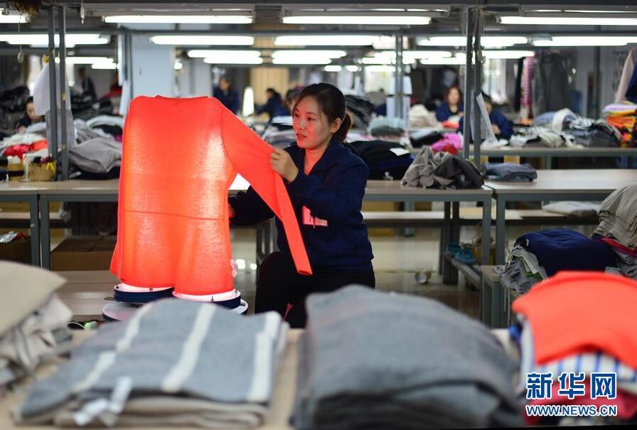 10月27日、河北省■(刑のへんにおおざと)臺市清河県のカシミア製品メーカーで、品質(zhì)検査擔(dān)當(dāng)者の邱霊雲(yún)さんがカシミアセーターの品質(zhì)をチェックしているところ。ダブル11が近づき、各地の企業(yè)はこのビジネスチャンスに焦點を合わせ、生産、営業(yè)販売、物流など各段階での戦いに備えて準(zhǔn)備をし、まもなくやって來るネット通販の熱い波を待ち受けている。
