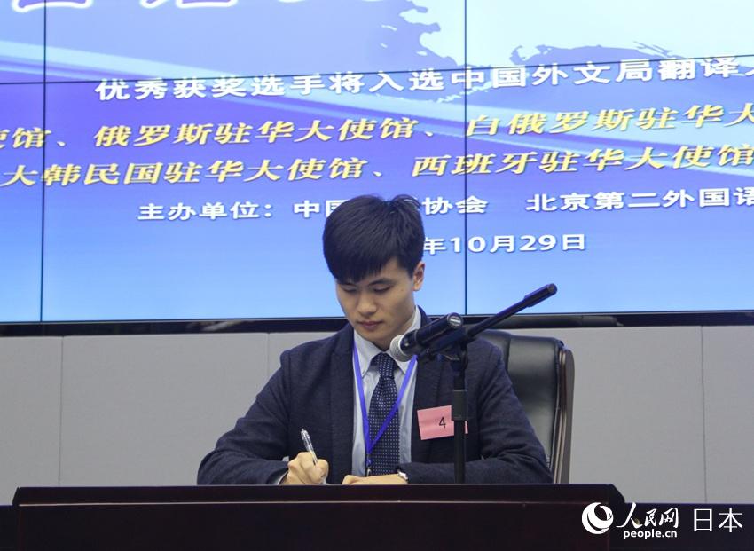 同コンテストでは、日本語の同時通訳、逐次通訳、フランス語の逐次通訳、ドイツ語の逐次通訳、スペイン語の逐次通訳、ロシア語の逐次通訳、韓國語の逐次通訳など、6言語、7部門が設(shè)置され、予選、準決勝、決勝が行われた。ネットを通じた予選では、中國國內(nèi)外の大學約40校の約90人が、參加校149校から選出され、準決勝に進んだ。