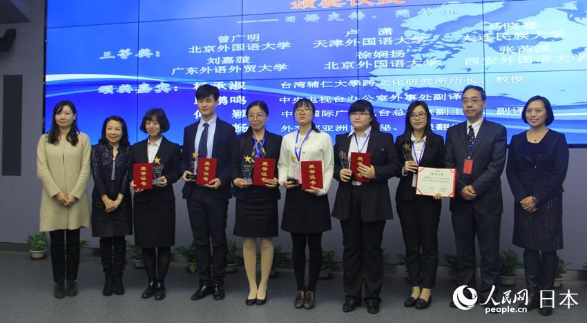 三等賞 広東外語外貿(mào)大學 劉嘉●(●は王へんに旋)、北京外國語大學 徐嫻揚、西安外國語大學 張▲溪(▲はくさかんむりに內(nèi))