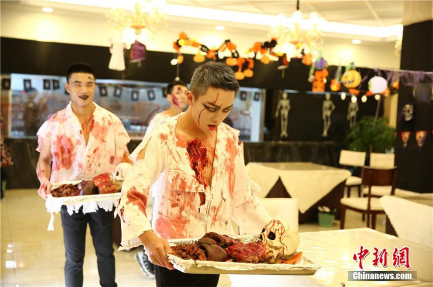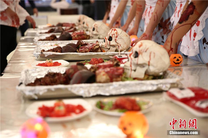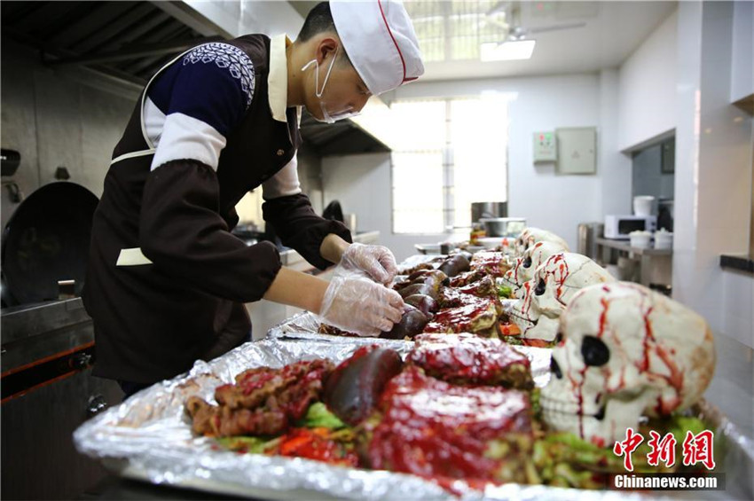 西洋で最も奇妙な年間イベントの「ハロウィン」を迎えた10月31日、四川省にある四川西南航空職業(yè)學(xué)院では「恐怖大學(xué)2016ハロウィンパニック」パレードイベントが開催された。同イベントに全校生徒や教師が參加し、その場(chǎng)はお祭り騒ぎとなった。大學(xué)構(gòu)內(nèi)の食堂でも、ハロウィンに合わせて、恐怖の暗黒料理が登場(chǎng)?!溉梭w」セットや、「眼球」スープ、ピリ辛「ブレイン」などさまざまな身の毛がよだつようなホラー系の恐怖「料理」が提供された。中國(guó)新聞網(wǎng)が伝えた。(編集TK)