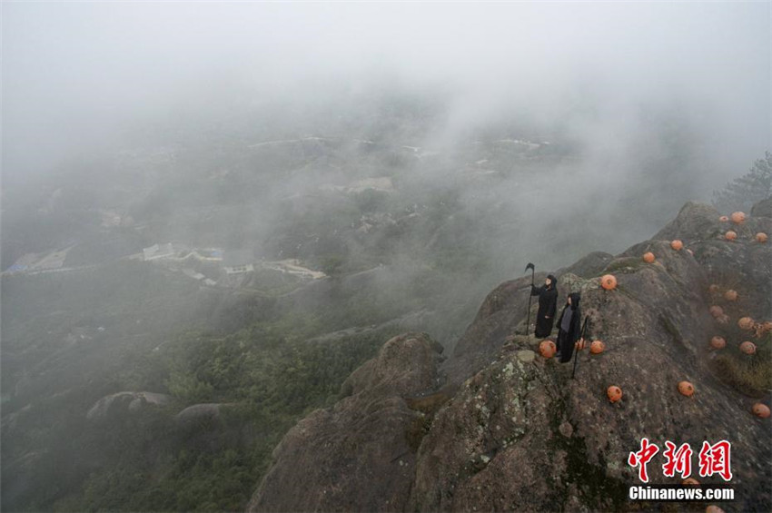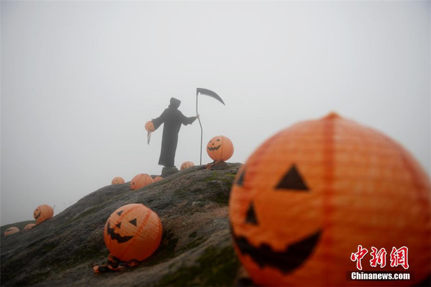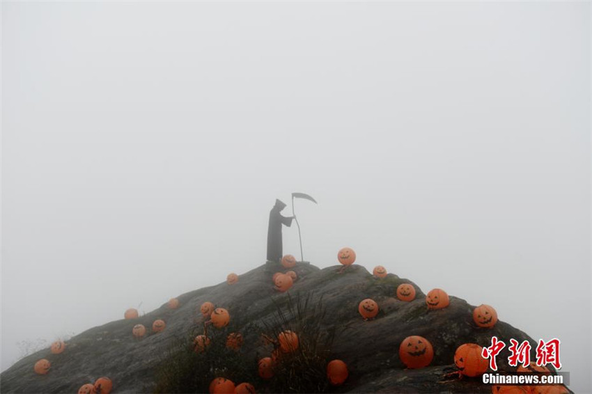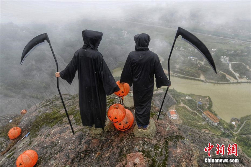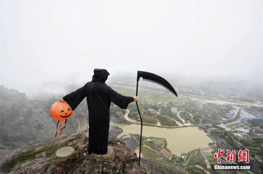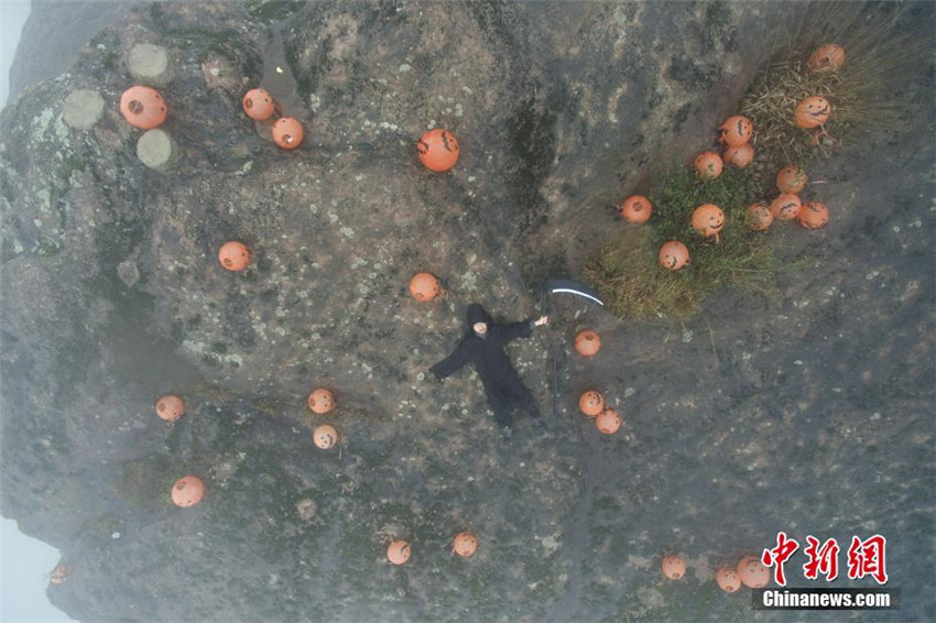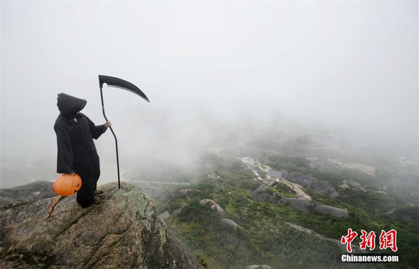 西洋の伝統(tǒng)ある年間イベントの「ハロウィン」である10月31日、「死神」の仮裝をしたアニメマニアが湖南省平江県石牛寨風景區(qū)の険しく切り立った斷崖に姿を現(xiàn)した。雲(yún)霧の中、斷崖絶壁で記念撮影をして、スリリングなハロウィンを味わった。中國新聞網(wǎng)が伝えた。(編集TK)