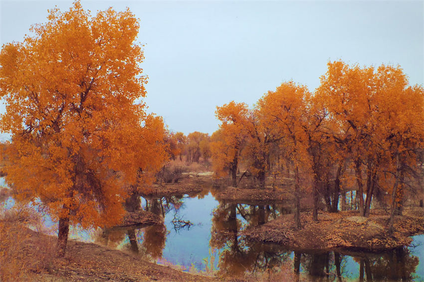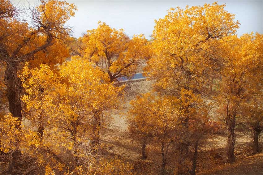 毎年10月下旬から11上旬は、新疆ウイグル自治區(qū)タリム盆地が最も美しい時(shí)期だ。數(shù)千キロにわたって続くタリム川の両岸に群生している野生のコトカケヤナギが連なる様子はまるでスケールの大きい絵を見(jiàn)るようで、その美しさと魅力を堪能しようと毎年全國(guó)各地から多くの旅行客がこの地を訪れる。(編集TK)