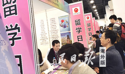 中國國際教育展の會場で、中國人留學生募集をPRする日本の各大學