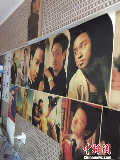 寮の部屋の中に貼られた有名人のポスター(撮影?王秋蘭)。