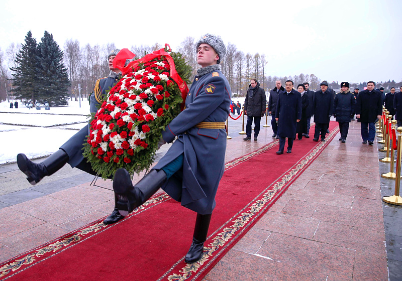 ロシア?サンクトペテルブルク訪問中の李克強(qiáng)総理は現(xiàn)地時(shí)間7日午前、市內(nèi)の共同墓地を訪れ、記念碑に獻(xiàn)花するとともに展示室を見學(xué)した。中國政府網(wǎng)が伝えた。