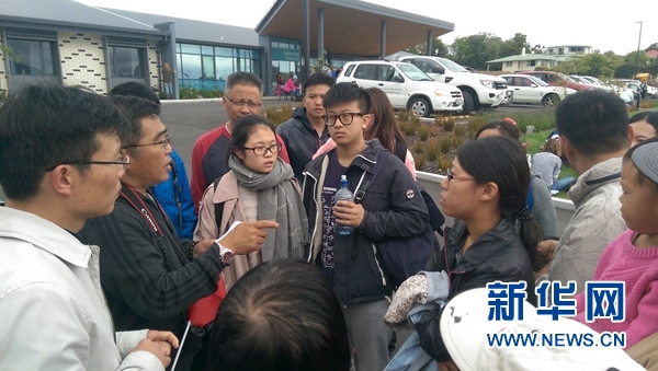 NZカイコウラ村で、中國(guó)人観光客に指示などを伝える在クライストチャーチ中國(guó)総領(lǐng)事館の職員。(11月14日、撮影?新華社記者の宿亮)