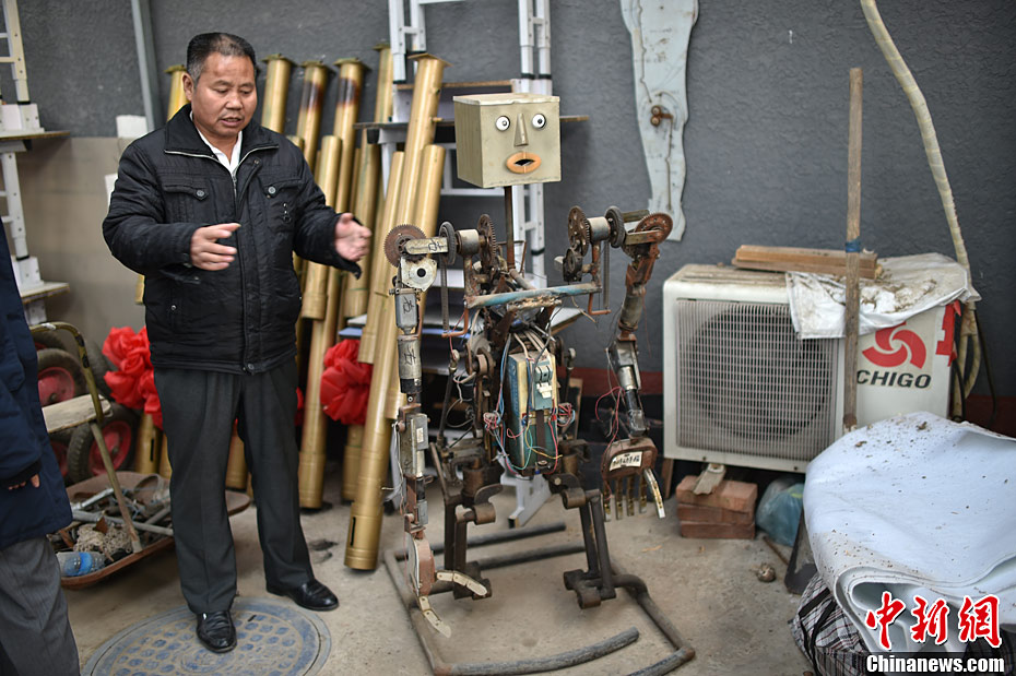 16日、記者は北京市通州區(qū)の農(nóng)民ロボット発明家?呉玉祿さんを訪ねた。小學(xué)校教育しか受けたことのない呉玉祿さんは、30年間ロボットの発明に心血を注いできた。呉さんが発明した全てのロボットには「必殺技」があるという。ロボットの名前は「呉」姓の後ろに兄弟の順?lè)虮恧寡匀~を付け、発明した順に「呉老大、呉老二、呉老三」のように名づけられている。全部で「呉老六十三」まで存在し、彼が本當(dāng)の「子供」のように可愛(ài)がっているロボットたちは、すでに63體まで増えている。中國(guó)新聞網(wǎng)が伝えた。(編集TK)