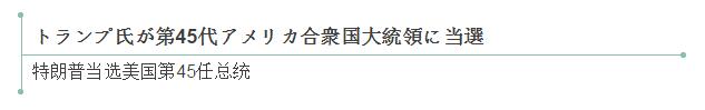 第45代アメリカ合衆(zhòng)國大統(tǒng)領を選出するため、現(xiàn)地時間11月8日(日本時間11月9日)に米國各地で開票が始まった。開票の結(jié)果、著名実業(yè)家である共和黨のドナルド?トランプ氏が米國國務長官と上院議員を歴任した民主黨のヒラリー?クリントン氏を破り、第45代アメリカ合衆(zhòng)國大統(tǒng)領に當選した。
