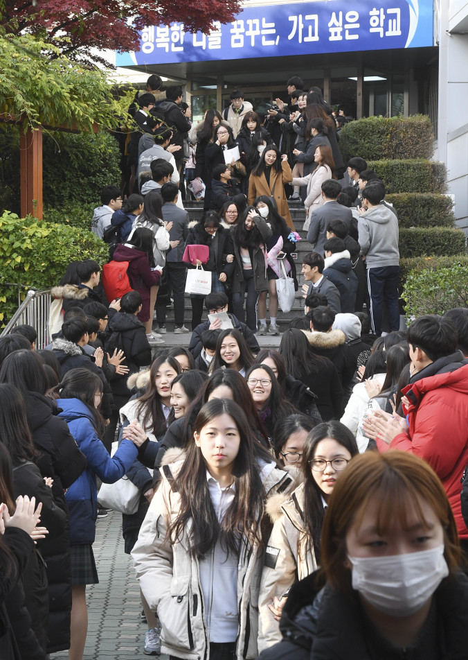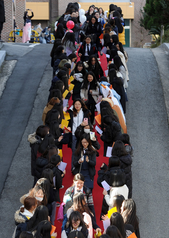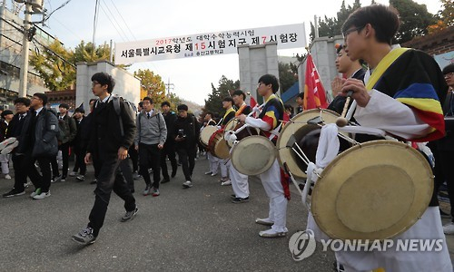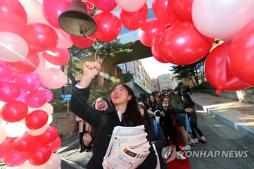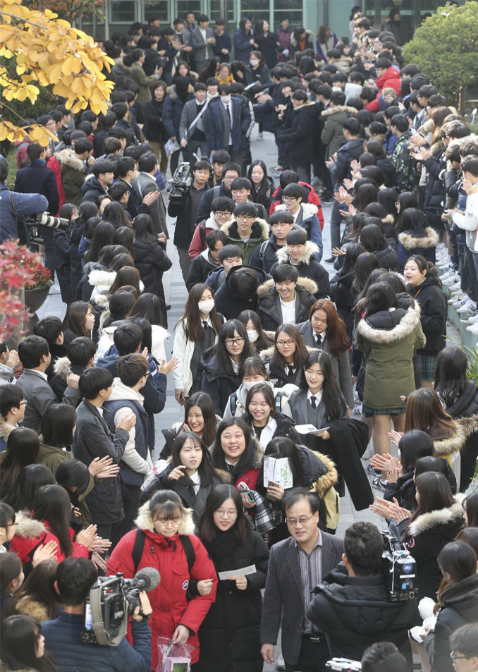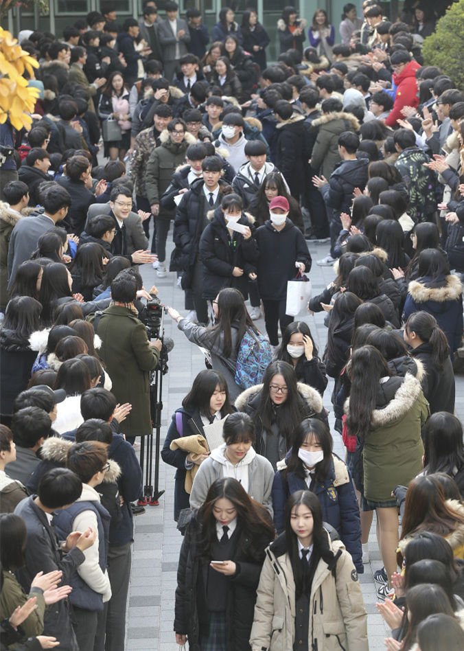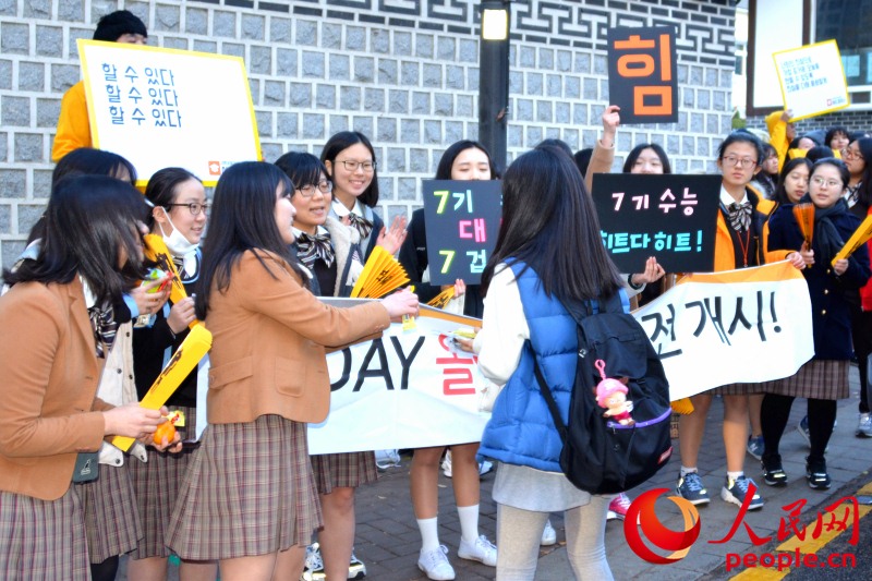 現(xiàn)地時(shí)間17日午前8時(shí)40分、年に1度の韓國大學(xué)入學(xué)試験がいよいよ始まった。受験生60萬人以上がそれぞれの夢を胸に抱き、試験場へと足を運(yùn)んだ。後輩たちは試験會(huì)場前に集まり、先輩たちの合格を祈願(yuàn)していた。韓國の大學(xué)入學(xué)試験は「大學(xué)修學(xué)能力試験」と呼ばれており、毎年11月中旬に実施される。寫真は試験會(huì)場の外で先輩たちの合格を祈願(yuàn)する後輩たち(成■撮影、■は石へんに頁)。人民網(wǎng)が伝えた。(編集TG)