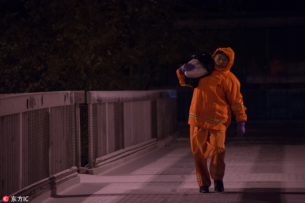 北京では21日未明からこの冬初となる雪が降り始め、朝になると一面の銀世界が広がっていた。都市管理総合行政執(zhí)法局によると、北京市は「除雪?除氷オレンジ警報(bào)」発令に伴い、隊(duì)員の動(dòng)員態(tài)勢(shì)を60%まで引き上げたということだ。人民網(wǎng)が伝えた。(編集YK)