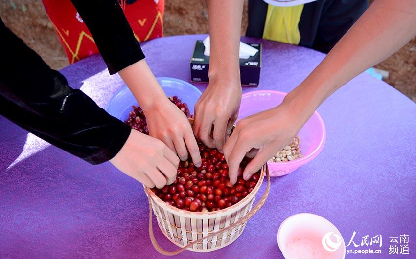 そのコーヒー豆は赤く色づくとサクランボの実のようになる。雲(yún)南の多くの地方では、若い男女が口を使って、摘んできたコーヒー豆の皮を剝き、皮を剝いた殻付き豆を天日干しにする。その後石臼で挽き、箕で篩にかけて精選したあと焙煎し、再び臼で細(xì)かく挽いて客人に出す。まさしく最高級の飲み物だ。