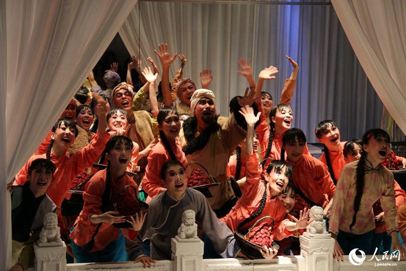 今回の演目は松山バレエ団が2017年の中日國交回復正?;?5周年を記念して上演したもので、劇中では主役の「喜児(シーアル)」を松山バレエ団団長で1948年生まれの著名バレリーナ?森下洋子氏が演じている。今回の上演は稽古場に臨時に設置された舞臺で行われた。正式な舞臺ではないものの、出演するバレリーナたちは全て一流レベルで、歴史ある有名な演目が放つすばらしいエネルギーにその場にいた人々は深い感銘を受けていた。上演には日本各界の著名人の他、メディア代表50人あまりが観客として集まった。