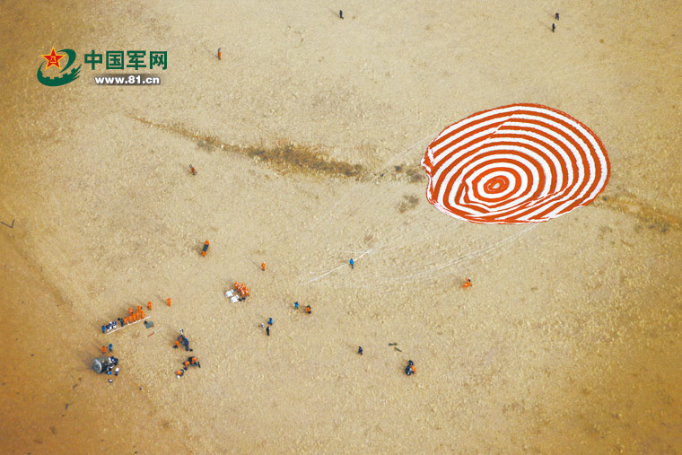 13時59分、神舟11號の帰還モジュールが著地に成功し、景海鵬氏と陳冬氏が無事地球に帰還した。