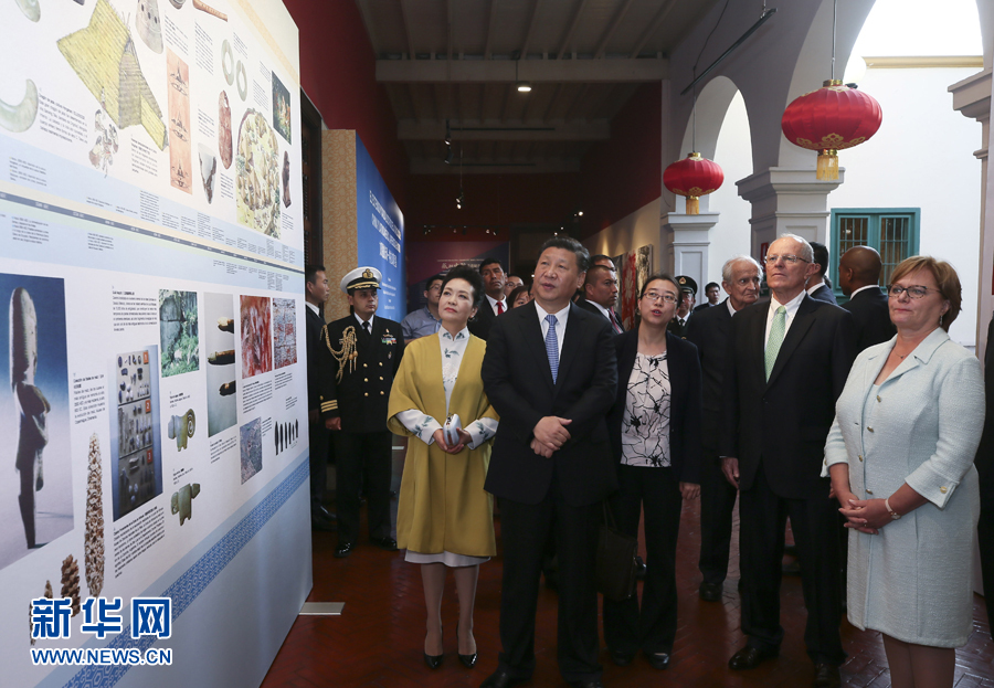 習(xí)近平國家主席と彭麗媛夫人は21日にリマでペルーのクチンスキ大統(tǒng)領(lǐng)、ラング夫人と共に中國?中南米文化交流年の閉幕式に出席したほか、中國至寶展を見學(xué)した。両首脳は閉幕式でそれぞれ挨拶を述べた。人民日報が伝えた。