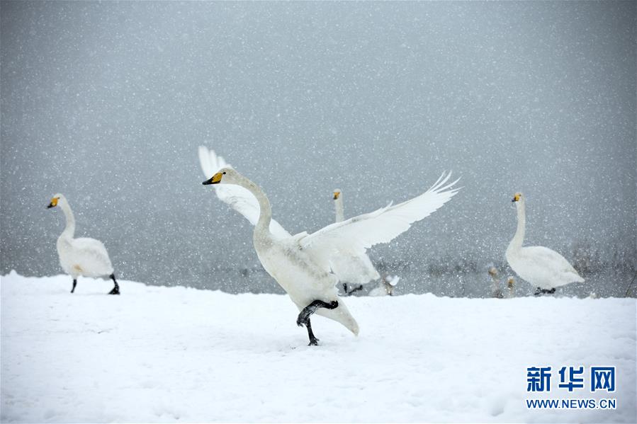 山西省平陸県の三灣黃河濕地では22日、今年の冬初めてとなる雪が降った。同日、同地に生息する白鳥が濕地の雪景色をバックに、美しい光景を作り上げていた。新華網(wǎng)が伝えた。(編集YK)