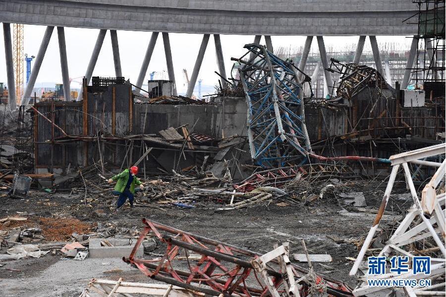 11月25日、救助者が清掃作業(yè)の終わった事故現(xiàn)場を歩く様子。(撮影?胡晨歓)