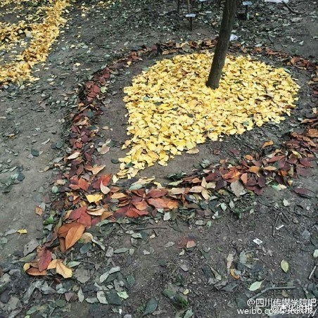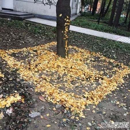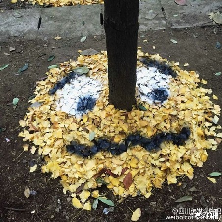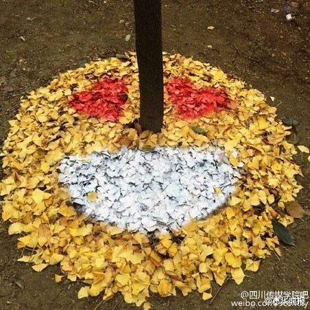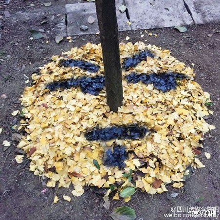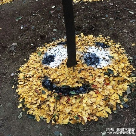 このほど、四川省四川伝媒學院のキャンパス內(nèi)のイチョウは黃色くいろづいていた。同大學の15年度入學の蕓術デザイン?アニメーション學院彫刻學科を専攻する學生が、その落ちたイチョウの葉で絵文字を作るという奇想天外な発想が話題となった。(編集TK)