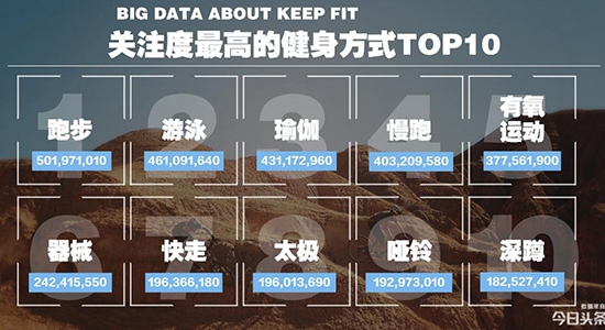 今日頭條では、運(yùn)動(dòng)関連の情報(bào)の閲覧回?cái)?shù)も16億回を超えている。中でも、體を最も露出させる7月と8月になると、ユーザーの運(yùn)動(dòng)に対する注目度が飛躍的に上がり、閲覧數(shù)は約100萬(wàn)回に達(dá)する。今日頭條のデータによると、閲覧回?cái)?shù)が最も多いのは「ジョギング」で5億回以上。そのすぐ後には、水泳とヨガが続く。地域別に見(jiàn)ると、ジョギングに対する注目が最も高いのは北京。以下、上海、天津と続いた。(編集KN)